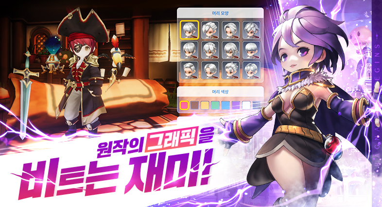 빠르고 경쾌한 횡스크롤 아케이드 MMORPG, 라그나로크 비긴즈의 모험이 시작 됩니다.