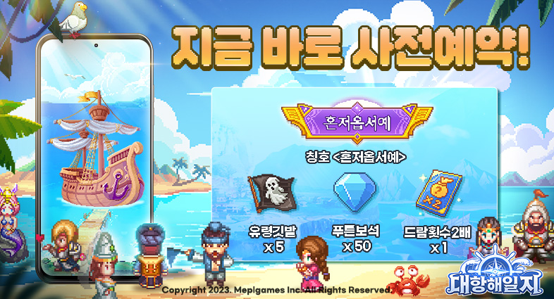 혜택 : 칭호 <혼저옵서예>, 드랍 횟수2배x1, 유령 깃발x5, 푸른 보석x50