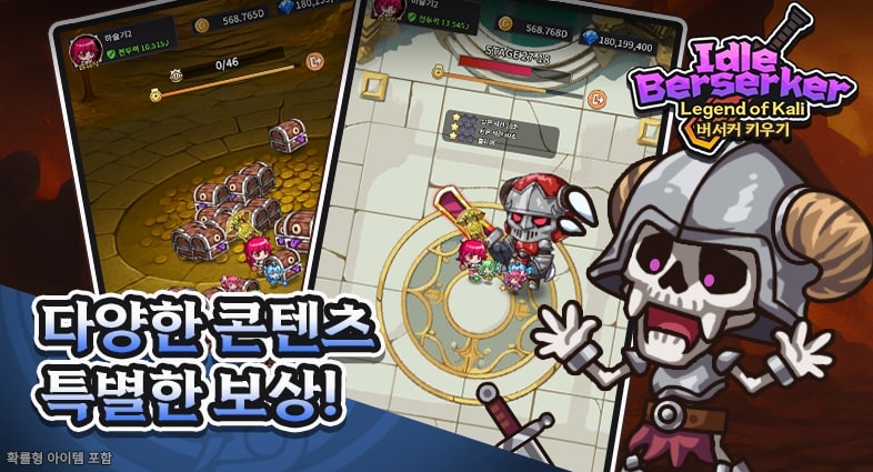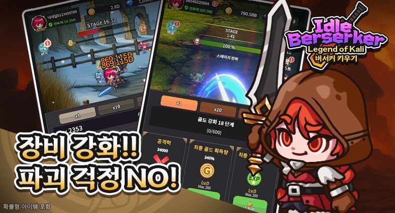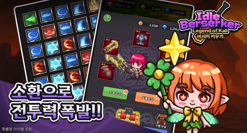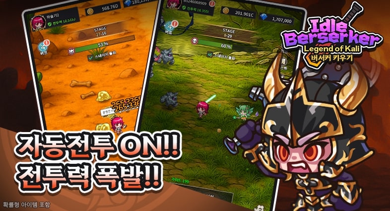 버서커 키우기는 ‘자동 전투 + 방치 성장 + 장비 수집 + 요정 육성’을 모두 갖춘 차세대 방치형 액션 RPG입니다.