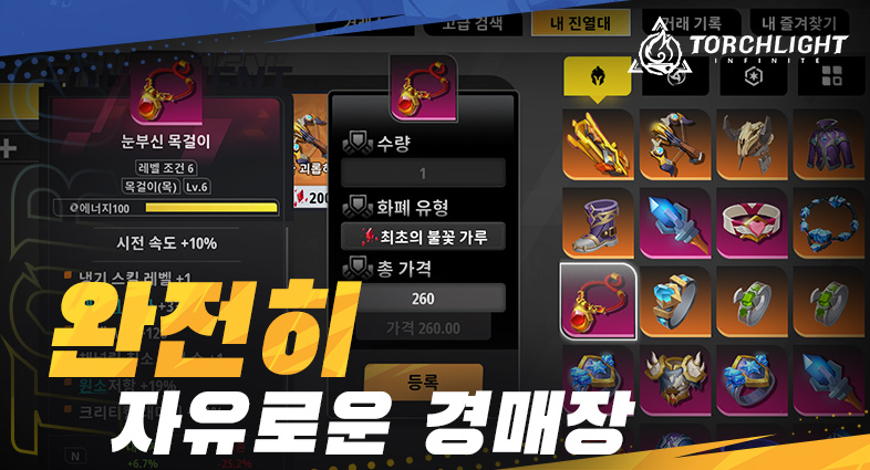 Torchlight 플레이어 누구나 자신의 스타일에 맞춰 영웅을 성장시킬 수 있으며 다른 플레이어의 빌드를 참고할 수도 있습니다. 거래소에서 다른 플레이어들과 서로 소중한 아이템을 거래하세요! 역시 물건의 진가는 직접 손에 쥐어 봐야 알 수 있겠죠!